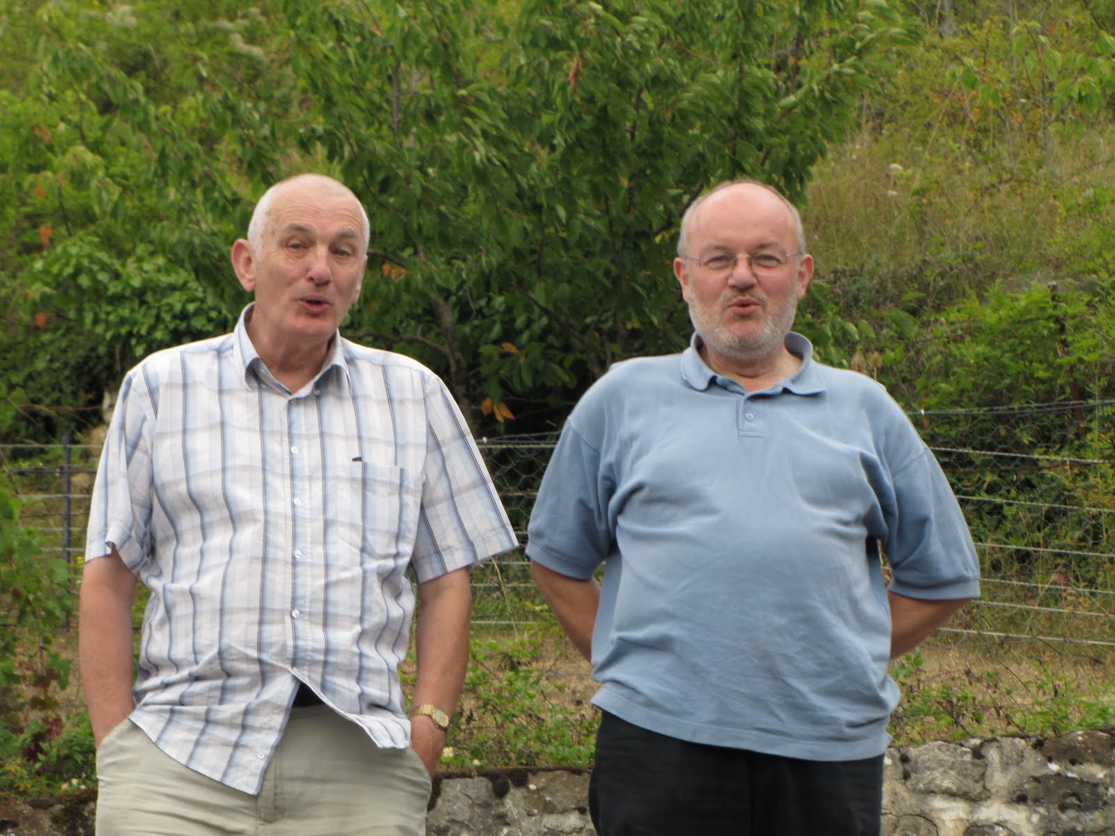 First thing in the morning we got up and went out with our neighbours Mme. Renee and M. Robert Lafon (who have kind of adopted us). We went to mass in the open air and the whole thing was said in the local language Occitan. We could understand some bits but most was totally incomprehensible apart from the odd sentence which made complete sense, a very odd sensation to suddenly hear something you understand in a sea of stuff you don't. We managed a bit with Robert whispering translations into my ear and also with the crib sheet. We joined in valiantly with The Lord's Prayer which as you can see is quite recognisable if you know any French, Spanish, Italian or Latin, although saying it is another matter! Robert was sniggering at our efforts, shame.